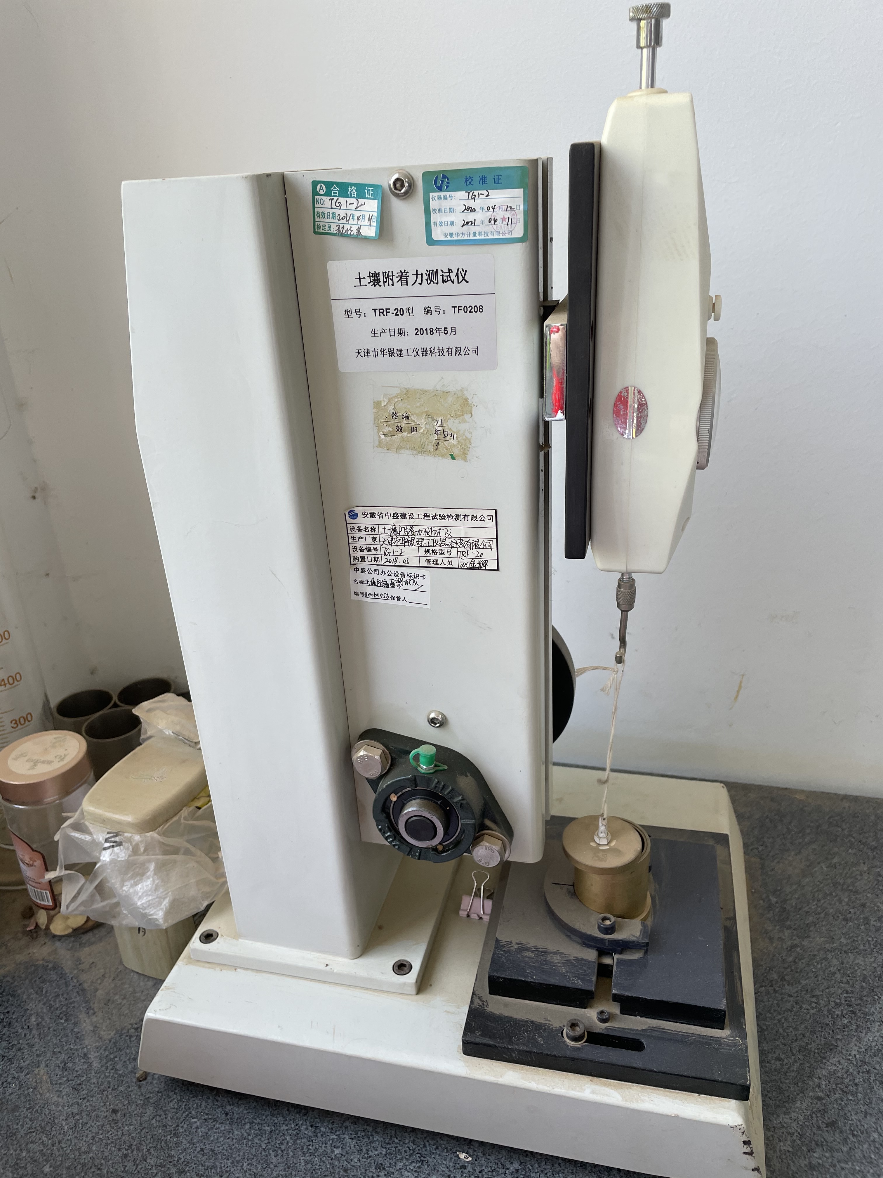 设备名称土壤附着力测试仪规格型号TRF-20量程/精度0-20N唯一性编号TG1-2生产厂家天津市华银建工仪器科技有限公司出厂编号/购置日期2018.05价格(元)4300检定/校准单位安正计量检测有限公司溯源方式校准检定/校准日期2024.1.23有效期2025.1.22修正因子/所属功能室土工一室状态标识在用保管人曹蓉