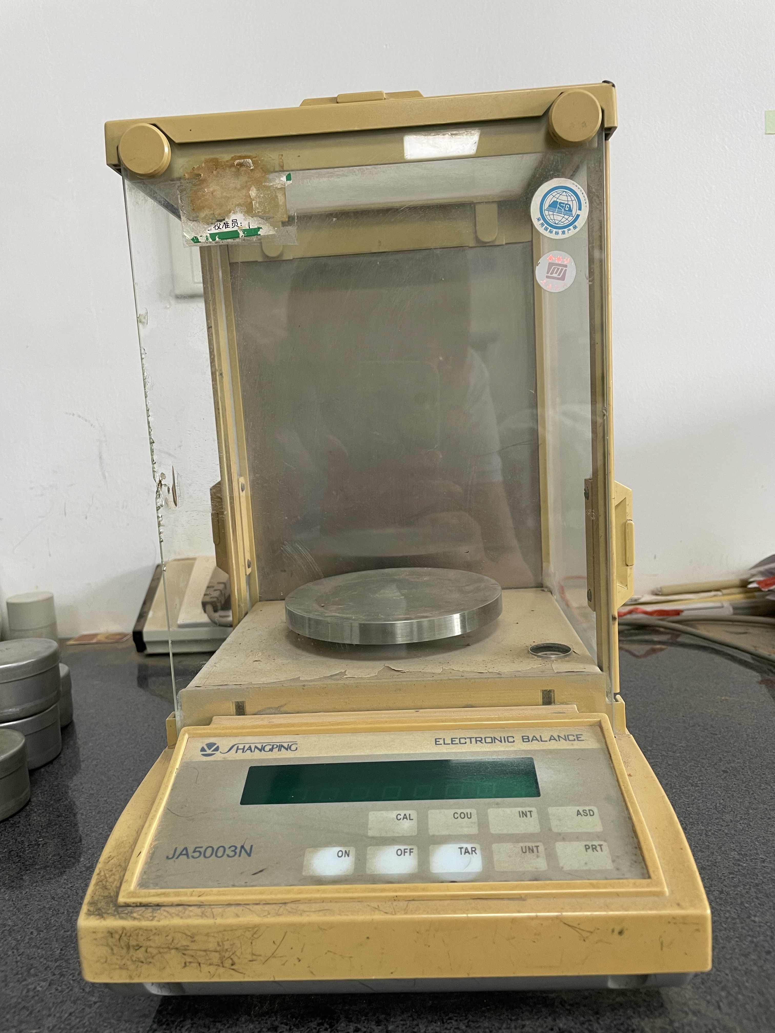 安徽省中盛建设工程试验检测有限公司仪器设备管理信息设备名称电子天平规格型号JA5003N量程/精度(0~500)g/0.001g 唯一性编号TG-11生产厂家上海精密科学仪器有限公司出厂编号2125购置日期2005.06价格(元)6300.0检定/校准单位/溯源方式/检定/校准日期/有效期/修正因子/所属功能室土工一室状态标识停用...