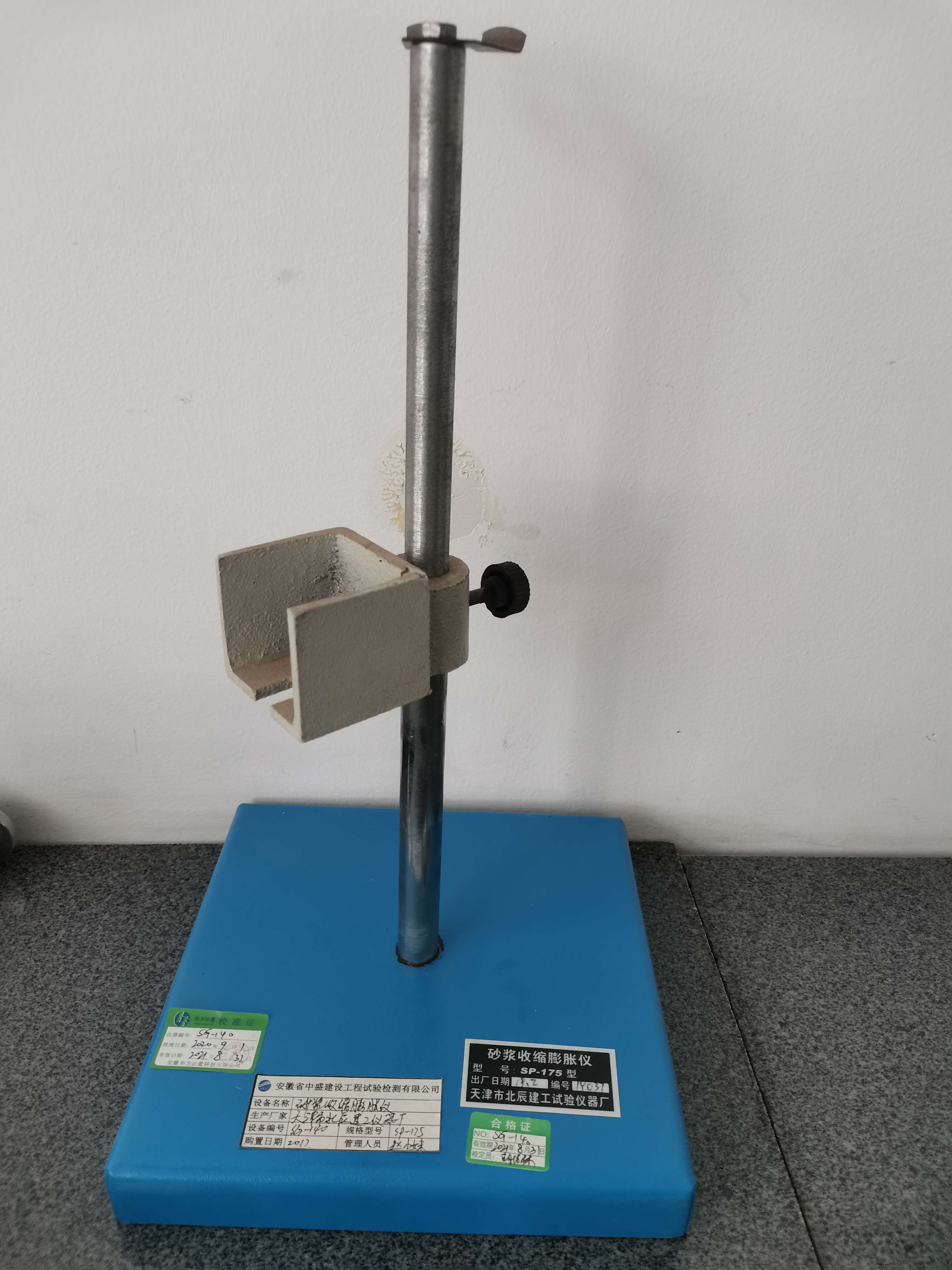 安徽省中盛建设工程试验检测有限公司仪器设备管理信息设备名称立式砂浆收缩膨胀仪规格型号SP-175量程/精度/唯一性编号SG-140生产厂家沧州路仪试验仪器有限公司出厂编号/购置日期2017.07价格(元)950检定/校准单位安正计量检测有限公司溯源方式校准检定/校准日期2023.8.3有效期2024.8.2修正因子/所属功能...